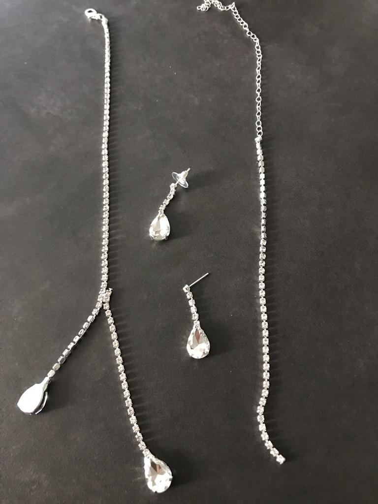 1 סט תכשיטי חתונה סט גדילים אביזר קישוט אופנתי עגילי שרשרת ברק בהיר אלגנטי למסיבות