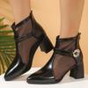 New Summer Fashion Wild Women Zipper Cool Short Sandals Ankle Boot Breathable High Heel Solid Color Mesh Cutout Shoe Silver