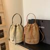 Summer Braided Straw Bucket Bag For Women Simple Drawstring Beach Shoulder Crossbody Bag