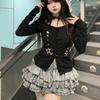סוודר גותי גותי הארג'וקו אוברסייז עם כתף חשופה עיצוב גראנג' הדפס אותיות סקסי שרוול ארוך פולוברים שחורים