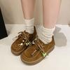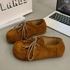 2025 autumn new flat-bottomed casual beanie shoes female kangaroo lace-up comfortable two wear suede loafers single shoes