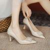 2025 autumn and winter Internet celebrity thick heel real soft leather single shoes women pointed French medium heel high heels square buckle soft sol