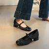 Women's Mixed Color High Heels Buckle Mary Jane Shoes Black Toe High Heels Fashion Patchwork Women Heels