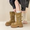 Retro kéthordású mozdony csizma női őszi és téli új övcsatos magasított kis vastag sarkú vastag talpú Martin rövid csizma