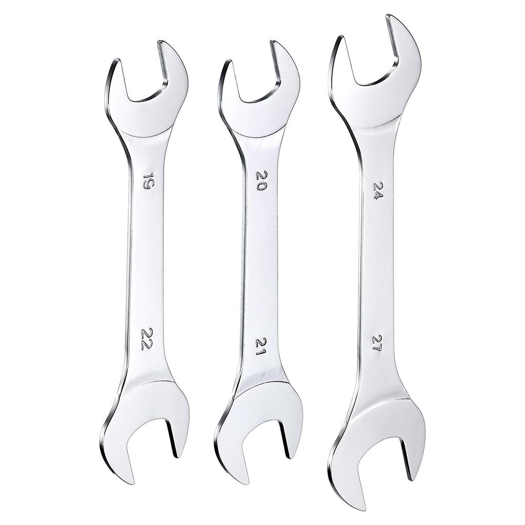 uxcell Double Thin Wrench Metric Small Flat Head Mirror for Auto Repair and Furniture Assembly 3-Piece Open-End Set, 19x22/20x21/24x27mm, Ultra-Thin,