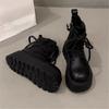 [Zhike] 2025 casual black big-headed mountaineering sports soft cowhide platform short boots Martin boots for women