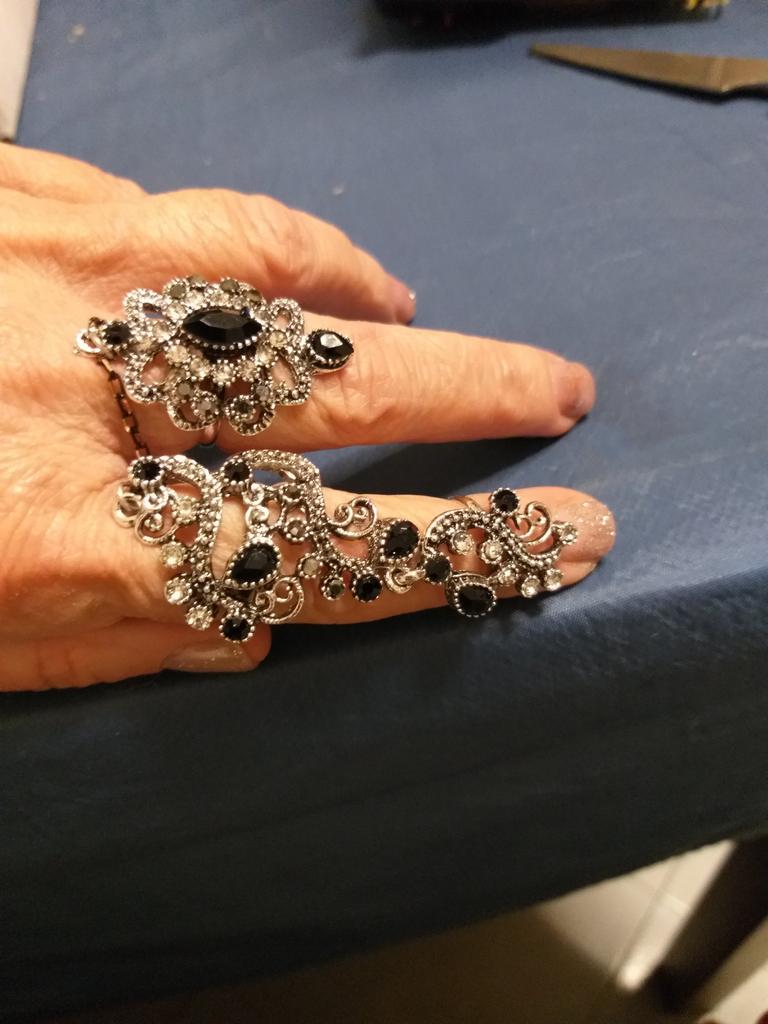 Bellissimi sia il bracciale sia il Gli anelli.fanno molta figura.sono ben fatti.molto belli messi adosso più che in foto