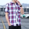 New summer men's plaid short-sleeved shirt Slim trend handsome casual men's versatile plaid shirt