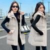 Down Cotton Vest Women's Mid-length Plus Size Thickened Autumn and Winter Fashion Slim Hooded Waistcoat Outer Wear