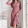 Fashion Women Solid Knitted Dress Long Sleeves Bottoming Pleated Dress