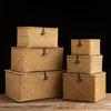 Woven Storage Baskets Wicker Storage with Lid Woven Storage Box Woven Natural Reed Storage Basket for Bookshelves Desks