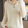 Autumn Winter Korean Ladies Hooded Long Sleeve Knitted Sweater Outerwear Zipper Solid Color Women's Fashion Top