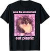 Save The Environment Eat Plastic Cute Cat Graphic T Shirt Funny Men Women O-Neck Clothing T-shirts Oversized T-shirt