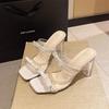 Fashion High-Heeled Shoes Lady Ladies' Slippers Glitter Slides Square heel Big Size Butterfly-Knot Jelly Block Butterfly-knot Square hee