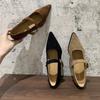 Spring Women Shoes Genuine Leather Mary Jane Shoes Pointed Toe Suede Chunky Heel Women Shoes Retro Low -Heel Pumps