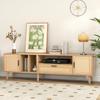 【Rattantür und LED】Eine zusätzliche Rattan-Tür verleiht dem Schrank einen rustikalen Touch und sorgt für ein harmonisches Gesamtbild. Die integrierte 16-Farben-LED-Beleuchtung schafft eine stimmungsvolle Atmosphäre und setzt Ihren Fernseher gekonnt in Szene.