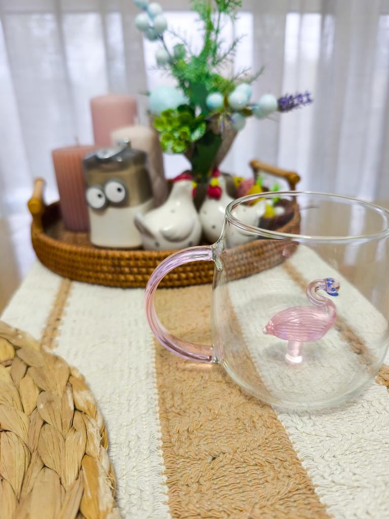 Animacinių filmų gyvūnas voverė, triušis, antis, katės letena, ežiukas, gervės 3D stiklinis kavos puodelis mielas didelio borosilikatinio stiklo pieno kavos puodelis