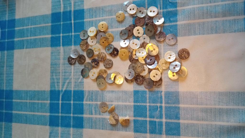 ganske ekte perlemor-knapper kom veldig raskt, de er bare litt "skjøre" fordi de er veldig tynne, men jeg forsterker dem med et lag lakk på baksiden
