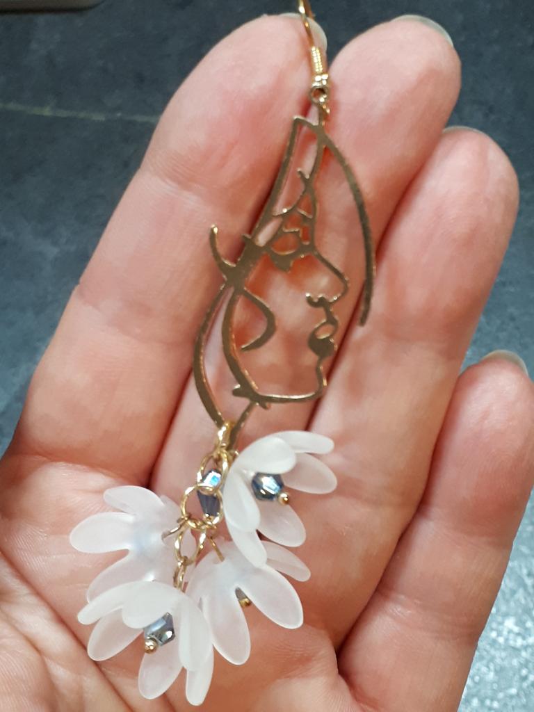 Veldig fine øredobber og veldig originale på grunn av deres asymmetri. 👍💖 Veldig elegante og fint utseende. Den ene måler 9 cm og den andre 9,5 cm. 💖💐 Jeg anbefaler. 💐👏