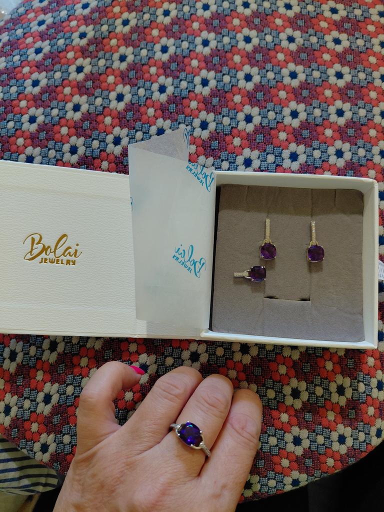 Et lekkert sett pent pakket, du kan ta det som gave. Alle produktene er 925 klasse. Steinen har en vakker rik farge, alt ser veldig delikat og elegant ut. Jeg tok en ringstørrelse 7, litt større enn vanlig, men den faller ikke av (sannsynligvis på grunn av den smale kanten på ringen). Jeg er fornøyd med kjøpet, jeg anbefaler det. Takk til Jum og selgeren💜