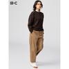This product features a total elastic waistband (non-adjustable) with an outer drawstring. The main material composition includes 55% Polyester, 19% Acrylic, 14% Rayon, and 12% Compound Fiber (Polyester). The rib portion contains 58% Cotton, 39% Polyester, and 3% Polyurethane. The outer pocket fabric consists of 60% Acrylic, 40% Rayon, while the inner pocket fabric matches the main material blend. The sweatpants are easy to care for and can be machine washed using a laundry net. However, they are not suitable for dry cleaning or tumble drying.