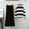 Høst Vinter Lazy Wind Løs O-hals Genser Dress Dame Ensfarget Langermet Strikk Bred Ben Bukser Kontrastfarge Todelt sett