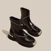 Fashion Shoes Female 2024 High Quality Zip Women's Boots Autumn Round Toe Solid Short Barrel Mid Heel Water Proof British Boots Zapatos