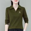 V-hals Langermet T-skjorte Dame Koreansk Versjon Løs Høst- og Vintertopp Dame Allsidig Ensfarget Base Skjorte Dame