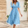 Damek sommer løs V-hals kort ermet kjole, elegant kjole
