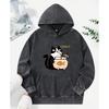 The Cat'S Head Is Wrapped In A Bag Printed Women Washed Hoodie Street Hoody Loose Pocket Tops Cotton Pullovers