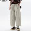INCERUN Men Zip-up Elastic High Waist Trousers Casual Long Wide Legs Pants
