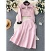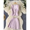 Internet Celebrity Vest Waistcoat Pleated Skirt Suit Metal Buckle