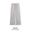 Kaslead Women's Clothing Stretch Lace-up Stripes Pants
