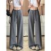 Spring Autumn Women's Student Wide Leg Straight Pants High Waisted Loose Thin Elastic Waist Trousers