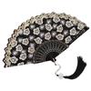 - Color: Mainly black. - Material: Bamboo and lace. - Length: Approx. 23cm/9 inches. - Diameter (unfolded): Approx. 40cm/15.7 inches. - Tassel pendant, cute and special hanging. - Hand-embroidered lace flower pattern, suitable for women. - Perfect for decoration, collections, sending as a wedding gift, etc.