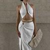 Fashion Style Sexy Sexy Fashion Suit Women's V Neck Halter Spaghetti Straps Vest High Waist Stitching Long Skirt Two-piece Set