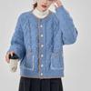 Autumn and winter new retro lazy wind knitted cardigan women's contrasting colors versatile loose soft waxy sweater jacket