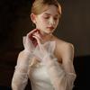Ruffled Glove Easy Elegant Arm Cover Pearls Long Sleeve Decorative Tulle for Wedding False Pearls Gloves Sheer