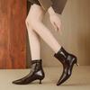 French high-heeled pointed short boots, new European and American thin-heeled bare boots, thin boots, retro brown short boots in autumn and winter 202