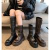 Cowhide version~ Grape mother has the same fashionable belt buckle long knight boots round head thick sole versatile medium tube short boots for women