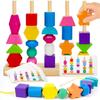 Wooden Montessori Toys Color Shape Matching String Puzzle Game Colorful Beads Cognition Educational Beaded Toy Gift For Children