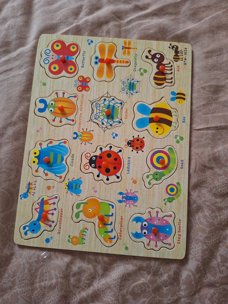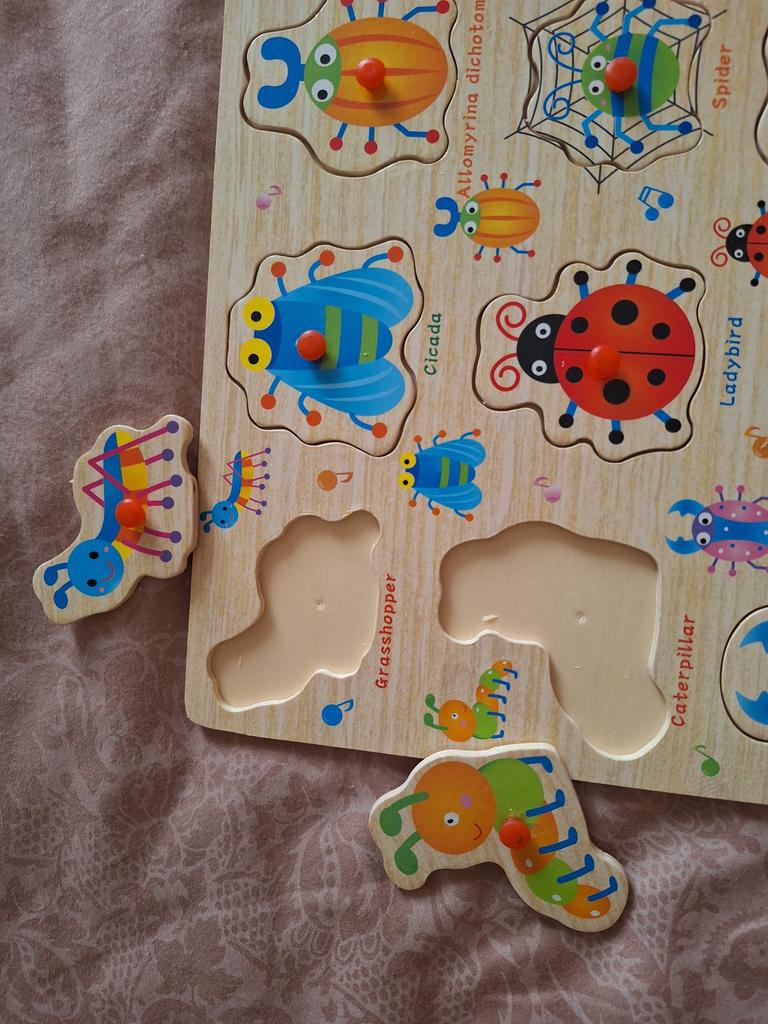 Baby Toys Montessori Wooden Puzzle Hand Grab Board Set Educational Toy Cartoon Gift (Insect)