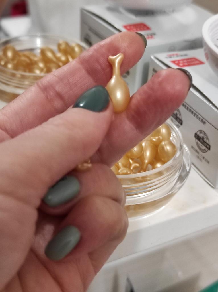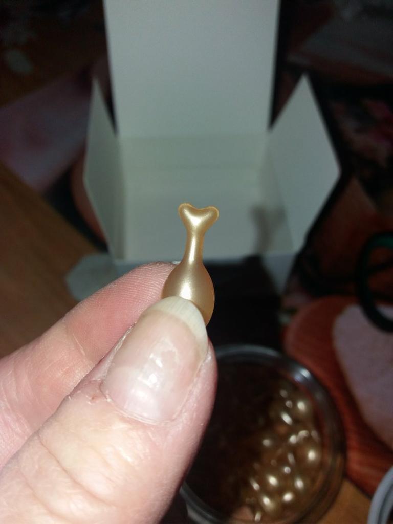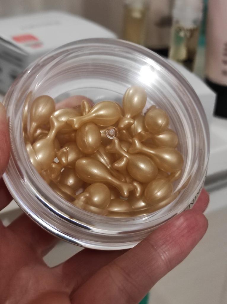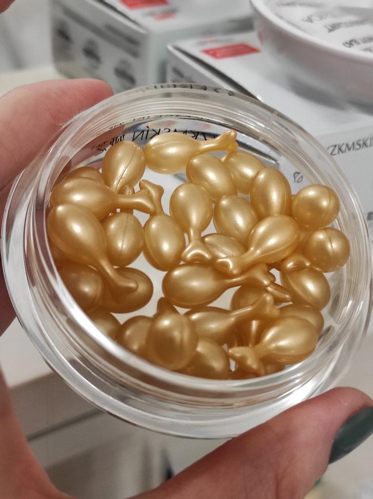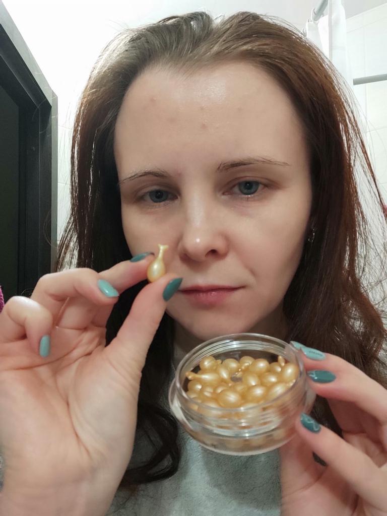 Капсулки маленькие, при открывании баночки Не сильно Пахнет икрой☝️ Упаковано хорошо👍 Перфорированный пакет, Коробочка затянута слюдой. Внутри пакетик с силикогелем, Для регулирования влажности в баночке. Капсул 30шт.-Полные под завязку. ☝️Достаточно проколоть иголкой Носик и капельно нанести Витаминизированное масло на лицо. Купила первый раз, Отзывы хорошие,попробую, Напишу ощущения. Спасибо продавцу за быструю доставку И качество товара. Капсулы свеженькие👍 На лицо ушла половина капсулы, Хватит на второй раз. Масло жирненькое, Легко распределяется по лицу и шее. Запаха никакого нет на коже. На последнем фото видно сколько Осталось ,просвечивается. В холодильник до следующего Нанесения ☝️ Хватит на 2 раза. После первого применения Долго впитывается, ☝️Капсулы со змеиным ядом лучше Впитываются и кожа ,как шёлком Покрыта на ощупь и осветляется.👍 ☝️ А после этих Кожа маслянистая. ☝️Хорошо подойдет для массажа мезороллером или добавлять в крема🤔🤗 Особого эффекта не увидела. Понаблюдаю🤗