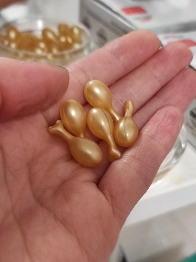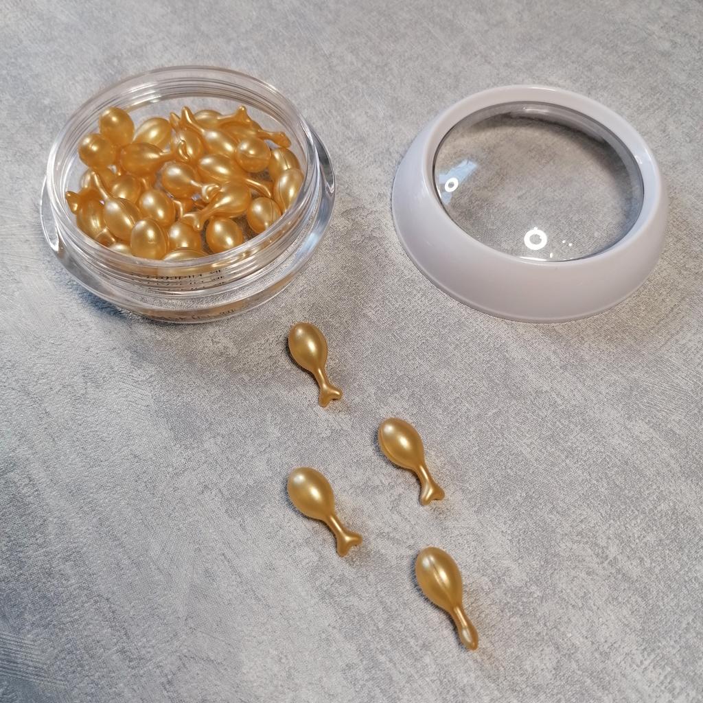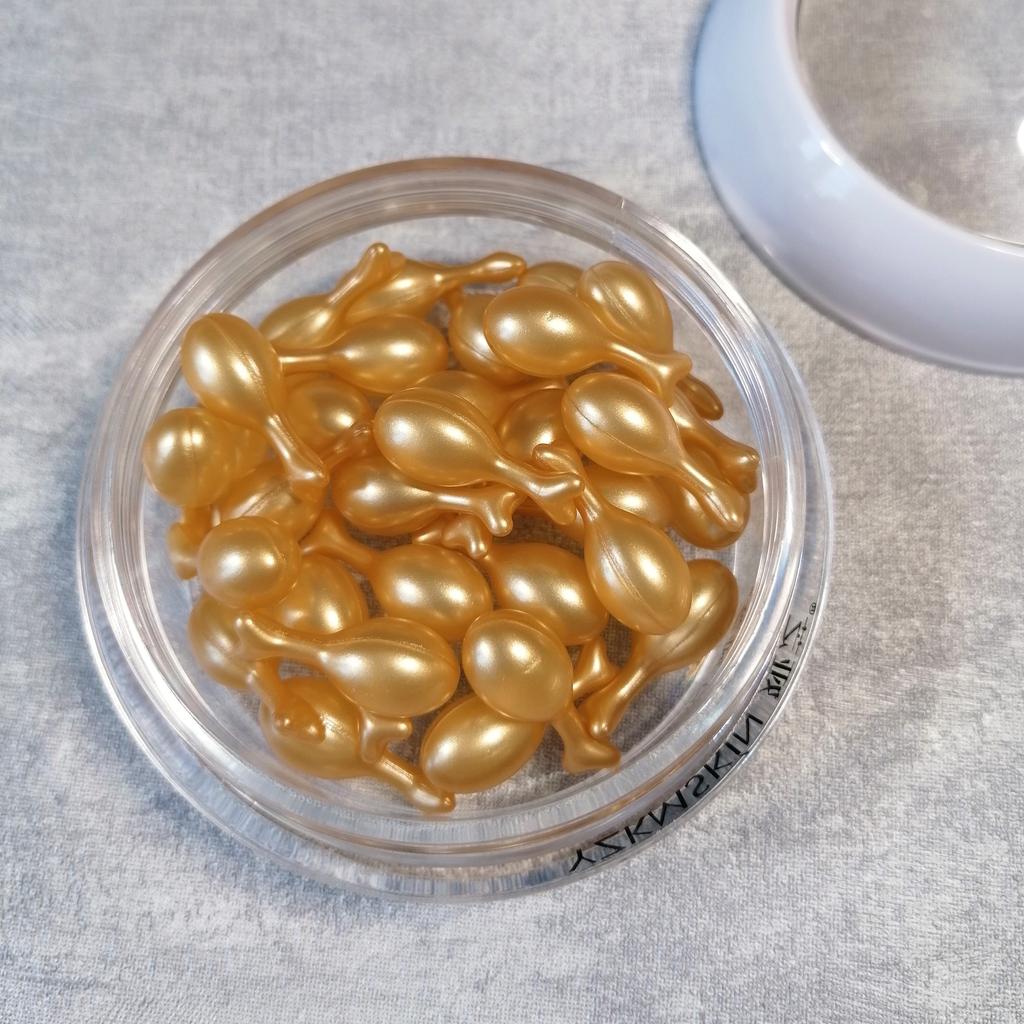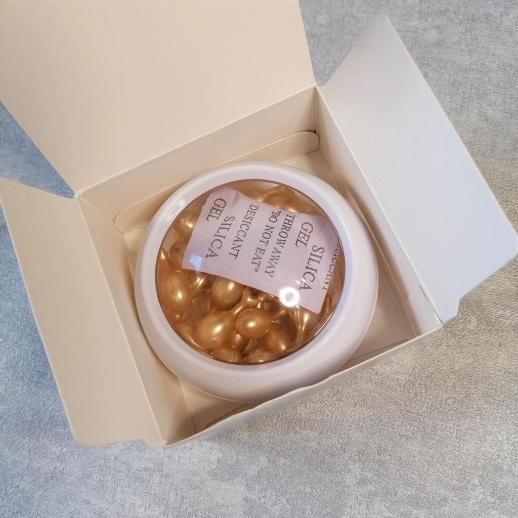 Капсулки маленькие, при открывании баночки Не сильно Пахнет икрой☝️ Упаковано хорошо👍 Перфорированный пакет, Коробочка затянута слюдой. Внутри пакетик с силикогелем, Для регулирования влажности в баночке. Капсул 30шт.-Полные под завязку. ☝️Достаточно проколоть иголкой Носик и капельно нанести Витаминизированное масло на лицо. Купила первый раз, Отзывы хорошие,попробую, Напишу ощущения. Спасибо продавцу за быструю доставку И качество товара. Капсулы свеженькие👍 На лицо ушла половина капсулы, Хватит на второй раз. Масло жирненькое, Легко распределяется по лицу и шее. Запаха никакого нет на коже. На последнем фото видно сколько Осталось ,просвечивается. В холодильник до следующего Нанесения ☝️ Хватит на 2 раза. После первого применения Долго впитывается, ☝️Капсулы со змеиным ядом лучше Впитываются и кожа ,как шёлком Покрыта на ощупь и осветляется.👍 ☝️ А после этих Кожа маслянистая. ☝️Хорошо подойдет для массажа мезороллером или добавлять в крема🤔🤗 Особого эффекта не увидела. Понаблюдаю🤗