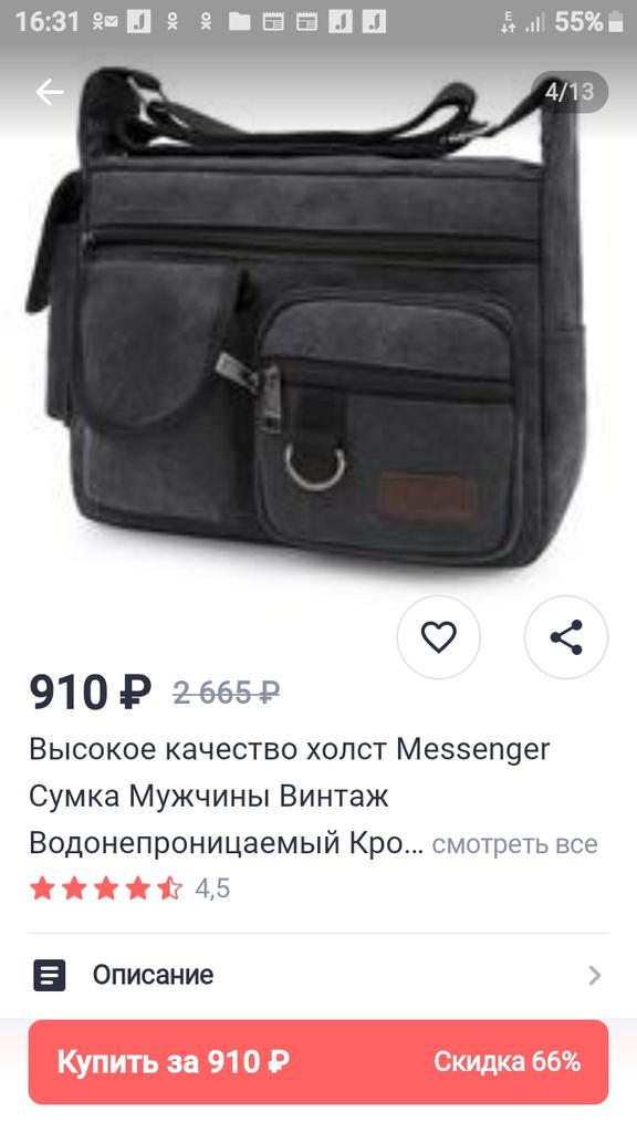 Доброго времени суток!!! Получил посылку, большое спасибо, сумка просто класс, вроде бы и не большая, а такая вместительная....прошито и слелано хорошо, спасибо большое продавцу и JOOM ...продавца и товар рекомендую 👍👍👍