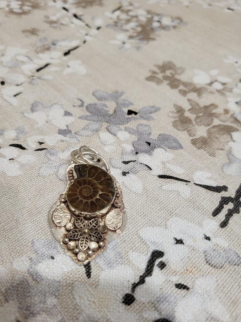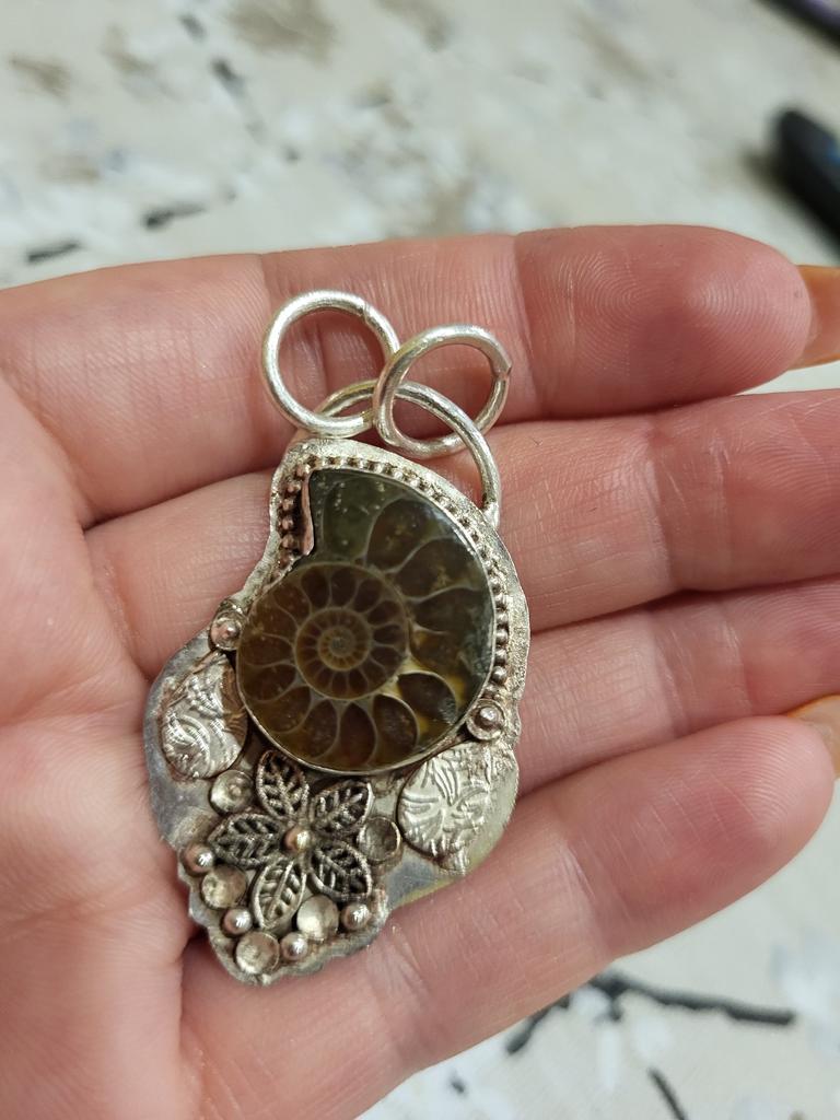 Подвеска из ископаемого аммонита из стерлингового серебра 925 пробы. Красивые ювелирные изделия из драгоценных камней. Подвеска из целебного камня ручной работы. Цветочные украшения. Подарок для друга.
